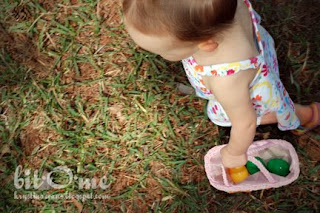 Marin was quite passive on the egg hunting field. She would find eggs and then simply hand them to other kids. Emma on the other hand, quickly grasped the concept of gathering eggs and at one point began "gathering" them from Marin's basket. She took them one by one and Marin simply stood there watching. I noticed the interaction from a distance, wondering what would happen next. It began with just a slight twitch in Marin's left leg. Little by little the twitch turned into shaking, which moved through her entire body and up to her lip...just before she burst into tears Emma offered to return the eggs. Whew! Needless to say, I was NOT allowed to remove the plastic eggs from her basket for the rest of the day. Aren't playmates fun? Thank you Emma, for sharing.